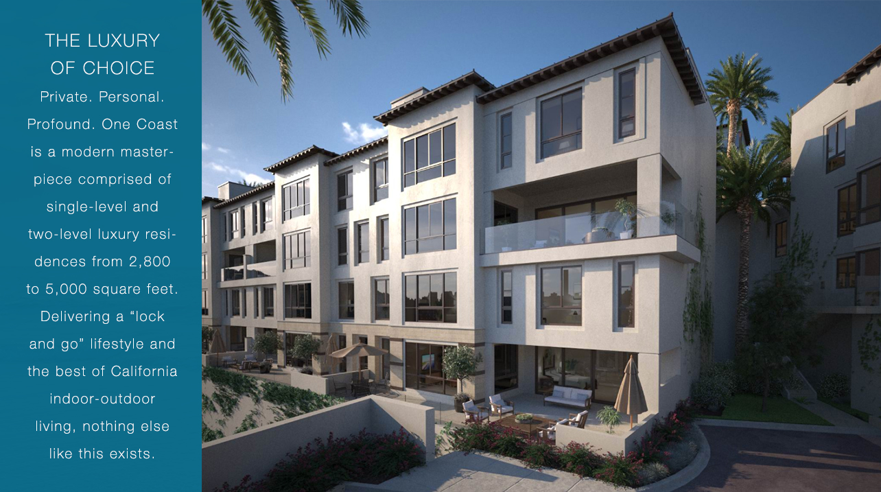 Placed on a bluff overlooking the sea in Pacific Palisades, One Coast is a modern masterpiece comprised of a limited number of single-level and two-level luxury residences from 2,800 to 5,000 square feet. Offering a lock and go lifestyle with full concierge services, guard-gated entrance, and the best of indoor-outdoor living One Coast presents the opportunity of a lifetime, available only once.