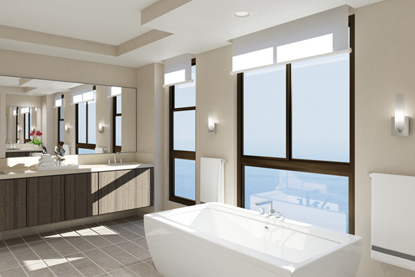 • Decorative tile, stone or quartz at shower walls and bath surrounds, per design packages